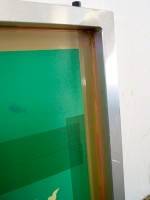 Die Siebe inkl. dem Alurahmen sind komplett fertig. Es wird nicht jedes Mal eine neue Druckgage aufgezogen, sondern das Sieb wird nach jedem Auftrag wieder ausgewaschen, neu beschichtet und mit dem neuem Motiv wieder belichtet. Je nach Siebdruckmaschine können nur bestimmte Siebe verwendet werden.